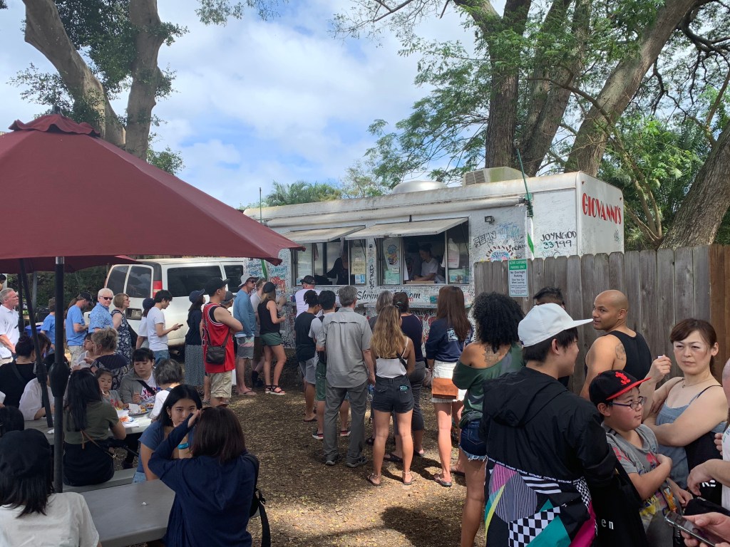 After a few days at the pool and relaxing we were ready to explore this island. We drove up the middle and headed into Haleiwa. This little town is filled with history, shopping and great eating. You could spend hours here. My kids do not love window shopping so we drove a little farther and stopped at Laniakea beach, this is where the turtles are known to come and beach themselves. When we showed up it was high tide, I guess the turtles come onshore mostly during low tide when the waves are calm. We decided to stay and spend some time looking for sea glass, shells and jumping in the waves. These are all past times my kids could do all day. After a few hours we decided to head back into town and find some lunch. We looked up Diners, Drive-Ins and Dives, he had been to and recommended Giovanni’s food truck. We sought it out and then decided to try as many food trucks as possible. They were all amazing! In fact the truck with the chicken and burgers was probably my favorite of them all. We also tried Honos food truck and I would have to say that they are just as great and the ribs where my kids favorite! So try them all – don’t get suckered into the long line at Giovanni’s.
