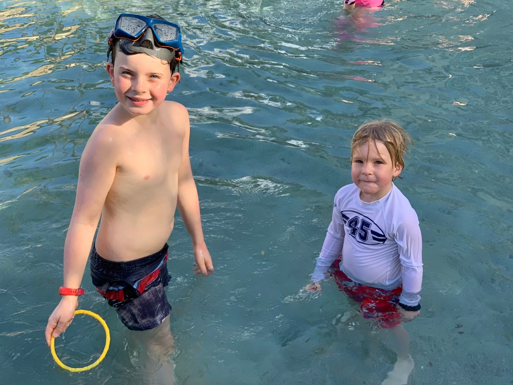 Douglas taught himself to swim! He was very hesitant at the beginning of the trip, needed his life jacket, had to be able to touch by the end he was floating, snorkeling and swimming! He loves the water and thoroughly enjoyed all the water time.
